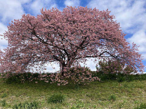 こちらも満開。車はおととし見つけた川沿いの空き地に止めて1時間くらい歩いてきました。