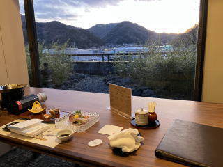 温泉もいいですが、料理が一段とおしゃれでした。何回か通っているので配慮してくれたのか、食堂の個室も前面大きな窓がある、一人ではもったいない個室でした。