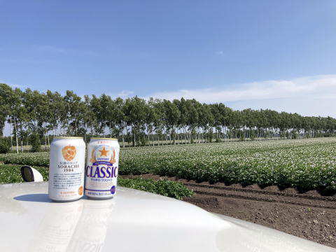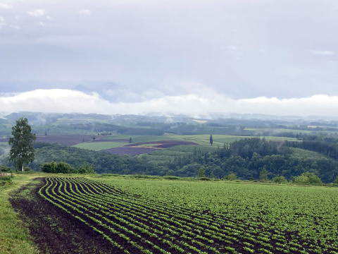 帯広に入る前、ジャガイモ畑と白樺がとてもきれいで思わず足をとめて写真撮影。北海道らしい風景でした。