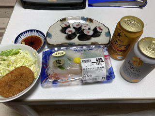 食費の残高は気になりますが、せっかく紋別に来ているので、今日はイオンで紋別産ヤリイカの刺身を買って晩酌です。絶品でした。