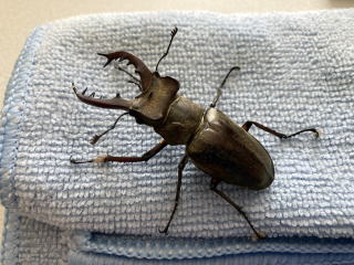 今日の画像は散歩の途中見つけた国道の標識とミヤマクワガタです。アパートのドアの前に歩いてました。カラスに食べられる前に森に逃がしました。