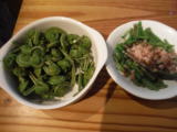 まっちゃんが釣りの帰りに杉さんとアイコを届けてくれました。お浸しにして以前採ったコゴミとおいしくいただきました。