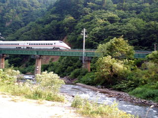 鉄橋をこまち号が走っている場所では,毛針でヤマメが釣れました。