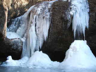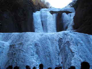 滝に続くトンネルを出ると,凍った滝が目の前に現れました。なかなかの景観です。