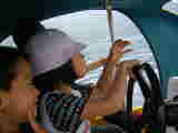 天気は曇りでしたが,風はなかったのでスワン型のボートに乗りました。なかなかうまく進みません。