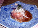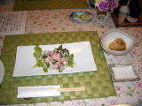 夕食は,前菜から始まり,洋風お好み焼き,馬刺などなど,一品一品ずつ届きます。