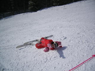 スキー初めての娘も,なんとかプルークボーゲンを修得することができました。