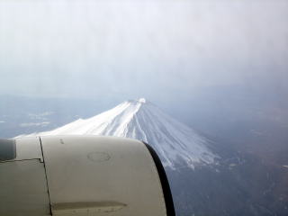 富士山の近くを飛んでいる時,噴火口が見えました。前回と飛行ルートが違うようです。