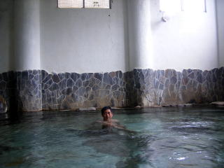 いい湯加減ですが,しぶきが目に入ると,痛くて目があけられません。かなりの酸性泉です。夜通し運転してきた眠さが一気に吹っ飛んでしまいました。