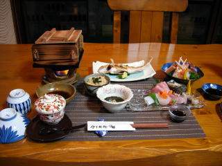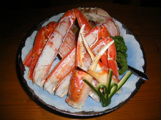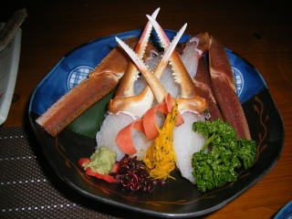 昼間は温泉づくしの予定だったので,宿は温泉より食事を優先しました。松葉ガニのシーズンなので別注5000円でのカニ料理も注文しておきました。