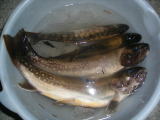釣れました。イワナ3尾,ヤマメ1尾です。魚影は濃いです。