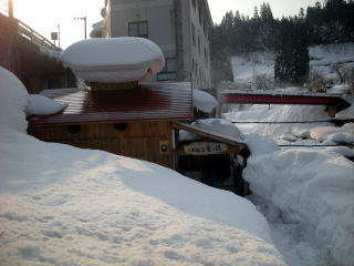 昭和村に入る前に,小川という川を渡りますが,橋が雪に埋もれてどこなのかわかりません。