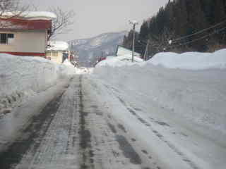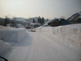 さっそく雪の壁です。高さは2メートル。雪の中に家々が埋もれています。