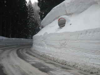 途中のカーブミラーは,ミラーを残して雪に埋まっていました。
