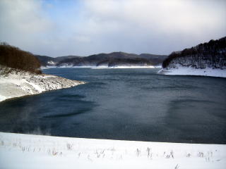 羽鳥湖は全面は結氷してませんが外の気温は-7℃です。