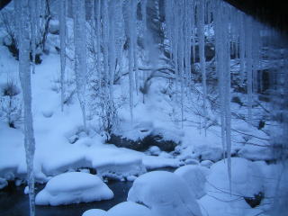 もうひとつ露天風呂もあるのですが吊り橋を渡っていかなければならなく,かなり寒そうなので今回はパスしました。