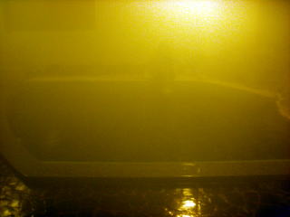 浴槽の底の岩の割れ目からもあもあと熱い湯が湧出してます。