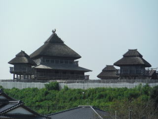 あおき温泉に向かう途中,車窓から吉野ヶ里遺跡が見えました。