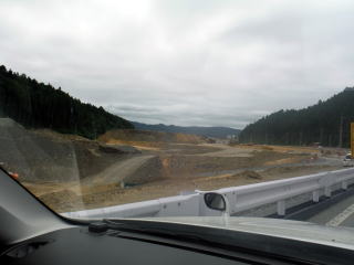 常磐道は福島県に入った辺りから道路沿い数キロおきに放射線量の表示板が設置されていました。一番高いところで4.1マイクロシーベルト、車は少なめです。車から見える風景は言葉ではうまく表現できないなんともいえない感じでした。