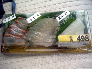 近くの商店で昼食用のお刺身を買いました。この前の新潟のウニといい、ここのお刺身といい、やはり地物はおいしいです。