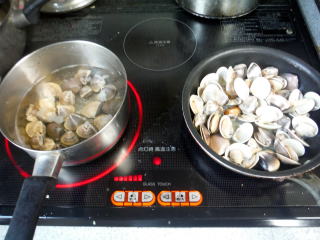 とりあえず今晩はアサリの酒蒸しならぬ「ハマグリの酒蒸し」と「ハマグリのすまし汁」、どちらも山菜畑の三つ葉を添えて・・・。