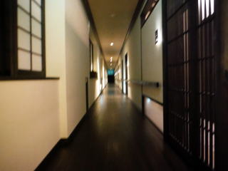 部屋もきれいで広いし、廊下は黒基調で黒川温泉の宿みたいです。