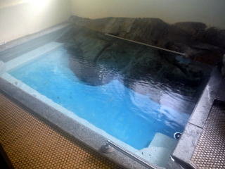 花崗岩の割れ目から気泡が上がっています。湧出量は少ないですがそれをを補うのに浴槽の底に配管がされていて,そこから温泉が投入されています。