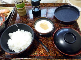 朝食もおいしいです。特にポイントが高かったのは,昭和村のじゅうねん(えごま)ドレッシングが用意されていたこと,自家製のヨーグルトでした。