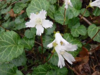 コシアブラを採りながら上に上っていくと、イワカガミの群落が今年もありました。可憐な白い花弁がとてもきれいです。