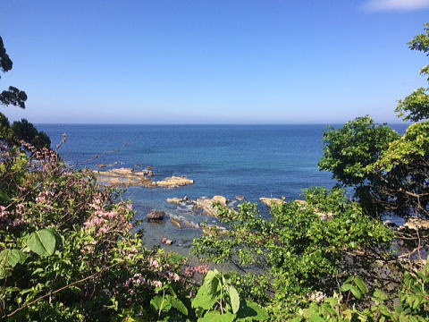 日本海がきれいです。途中深浦町の道の駅ではもちろんイカ焼き、うまいです。