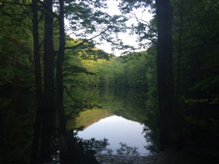 この前テレビでたまたまやっていたのです。雲一つない空、ブナの新緑の美しさ。そして美しくたたずむ湖面には森の木々が湖面に鏡のようにうつっています。