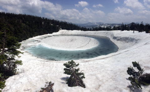 ここでぜひとも見たいものがありました。ドラゴンアイです。そそくさと雪道を上っていきました。これです!!