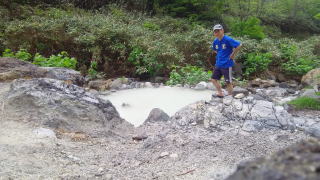 湧出している場所まで行きましたが、底の岩が「あちち」と、かなり高温でした。