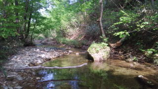 これがイワナの桃源郷でした。小さい沢ですが、瀬を走るイワナが確認できます。