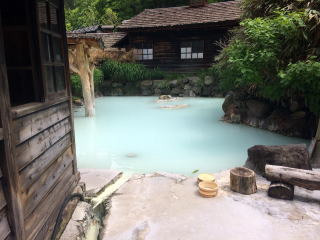 10時ぴったりに受付。すかさず露天風呂を目指しますが、こんなことがあっていいのか。人っこ一人いません。これ日本の代表の一つの鶴の湯露天風呂独り占め!?