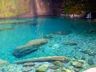 とにかく透明な水でした。浅そうに見えますが深いです。狭そうに見えますが広いです。 透明度はうちの水道を遙かに上回っています。これです。