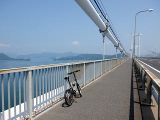 が、続いて四国から本州へ。「しまなみ海道」です。 実はここをサイクリングするために折りたたみ自転車を車に積んできました。