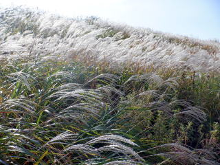 車も少なく,快適なドライブロードです。一面のススキが風に吹かれてたなびいています。ススキはこの時期にした理由の一つです。
