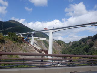 阿蘇から熊本に行く途中,地震で崩落した阿蘇大橋はまだ工事中でした。