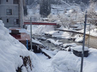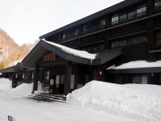 続いて昭和村に向かいます。積雪は1メートルほど。途中八町温泉亀の湯で休憩、道の駅「からむし織りの里」でエゴマ油を購入し、本日のお宿「元湯甲子温泉 旅館大黒屋」に向かいました。