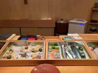 料理3品がつきます。カウンターで食べるのは昔行った「鮨 水谷」(数年前に閉店)以来です。
