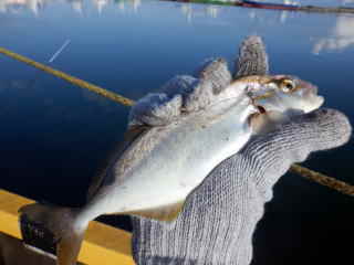 7時前には小サバ16匹、ハゼ1匹、イワシ1匹、そしてなんと、小さいけどカンパチです。やった!