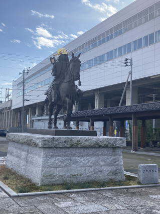 お昼すぎには「上越妙高」到着。駅前に上杉謙信の像がありました。