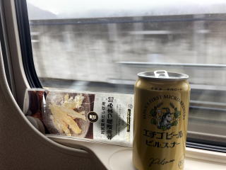 ビール自体も美味しいのですが、外の風景を見ながら(といってもトンネル多し)飲むのは余計においしく感じます。