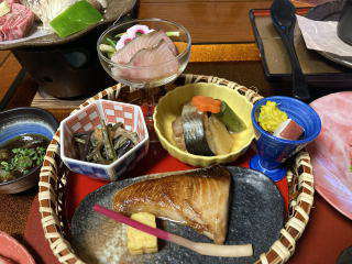 食事も牛肉の陶板焼きをはじめ品数豊富のうえ、とても美味しいです。それに利き酒3種付きでなんと11000円。信じられないほどリーズナブルです。