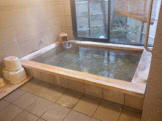檜が浴槽の縁を囲んでいて、その香りがまた癒やしになっています。