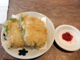 これで二人で2000円程度。うどん、つゆ、天ぷら、どれをとっても一級品です。ハモ天はかなりの大きさの物が二つ付いています。梅肉で食べます。
