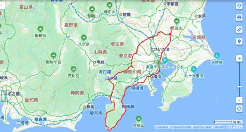 帰ってから地図を見てみると、伊豆は思いのほか遠いことがわかりました。往復680キロも走ってしまいました。