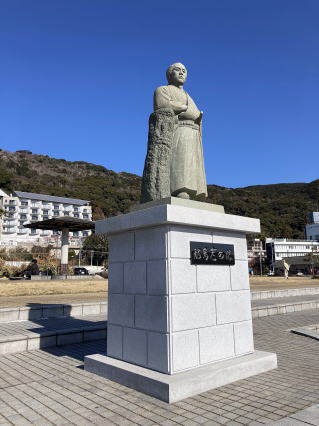 下田の「まどか浜海遊公園」で海を眺めながらリモートワーク。海を見ている坂本龍馬の像がありました。