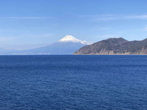 突然、海の向こうに富士山が現れました。でかいです。美しいです。